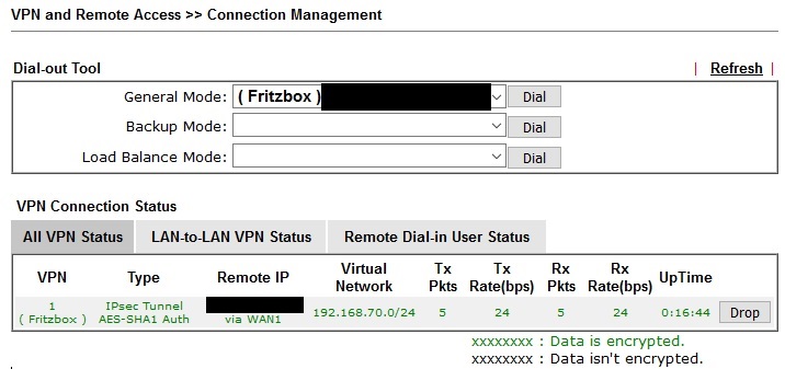 Konfiguration einer IPSec LAN to LAN VPN Verbindung zwischen einer FritzBox und einem DrayTek Router