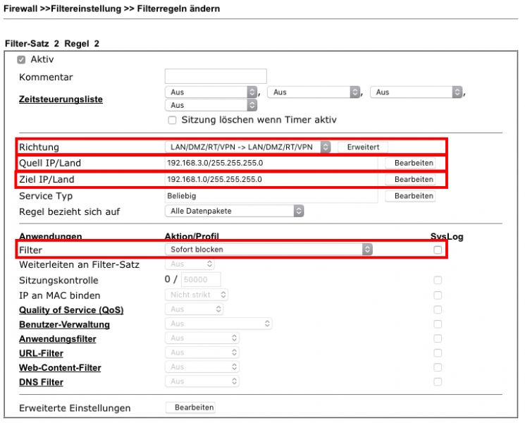 Inter-LAN-Routing auf eine Richtung beschränken? (DrayOS)