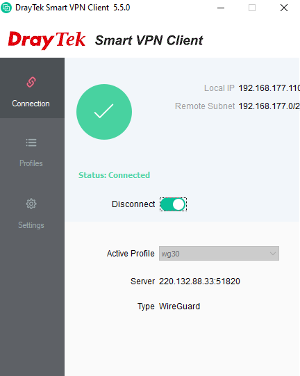 Dieser Artikel zeigt, wie Sie einen WireGuard VPN-Tunnel zwischen einem Vigor3910 oder Vigor2962 und dem Smart VPN Client aufbauen.